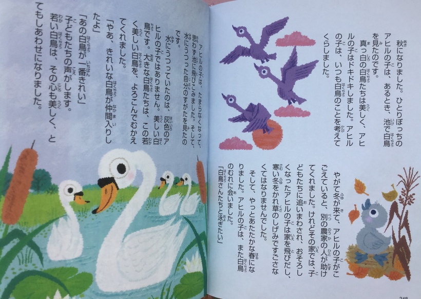 愛と優しさ、信じる心と行動する勇気、感じる心や想像力、素直な心と純粋な気持ちにスポットライトをあてて100のお話を発達心理学の観点から渡辺弥生教授が選定されたそうです。選び抜かれた100話には、それぞれの生きる道や素晴らしい考え方や優しい心を子供達に教えてくれます。